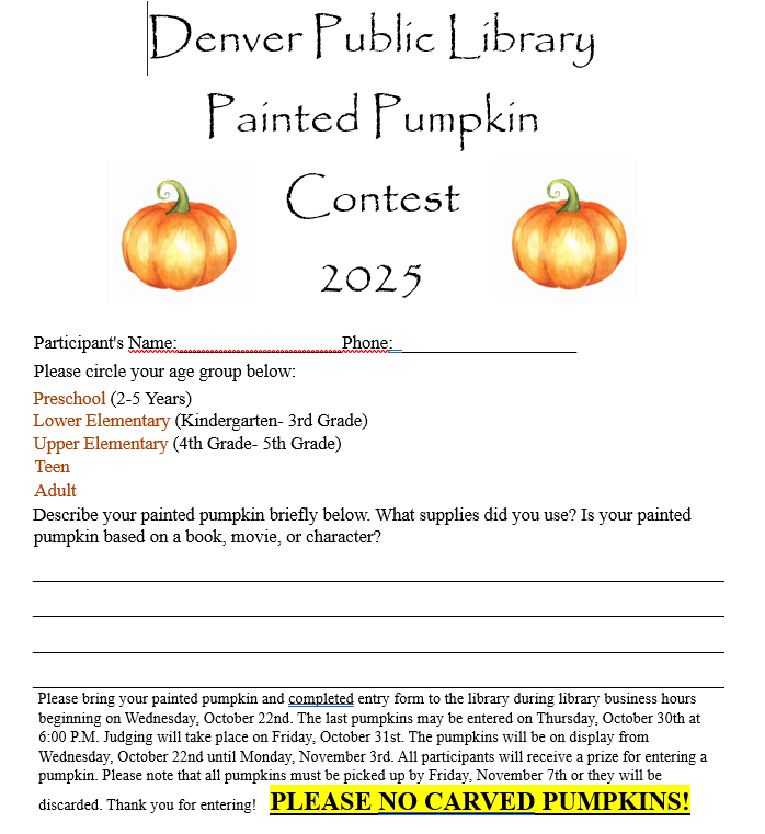Painted Pumpkin Contest Entry Form
